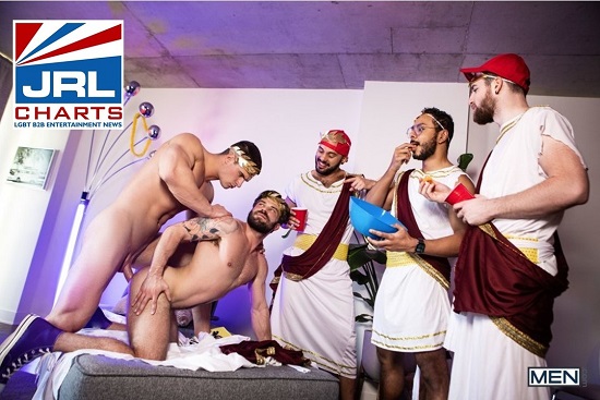 BURBANK, CA — (03-16-21) — Men.com Entertainment unleash their latest scorching entitled ‘Tug On My Toga’ starring gay adult film actors Malik Delgaty and James Fox. Watch as Malik Delgaty plows into James Fox in front of his soon to be frat brothers.