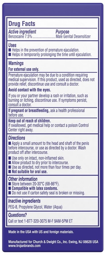 The Extended Pleasure Delay Spray is an innovative new product from Trojan that helps the user last longer and keep the pleasure coming. The spray features the active ingredient Benzocaine, 7.5%, a male genital desensitizer that helps prevent premature ejaculation.
