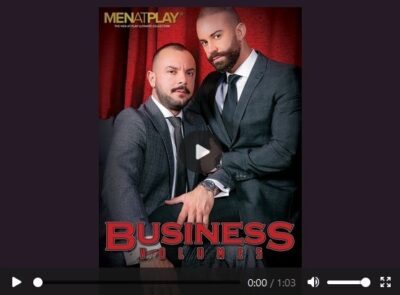 “Let’s get down to BUSINESS: Kicking off the new year with a bang, 3 studs are having a three-way celebration. A perverted doctor conducts a deep rectal examination on a patient. A man suits up in one of his boyfriend’s suits before cheating on him. A very supportive co-worker helps his colleague relax with a raw fuck.”