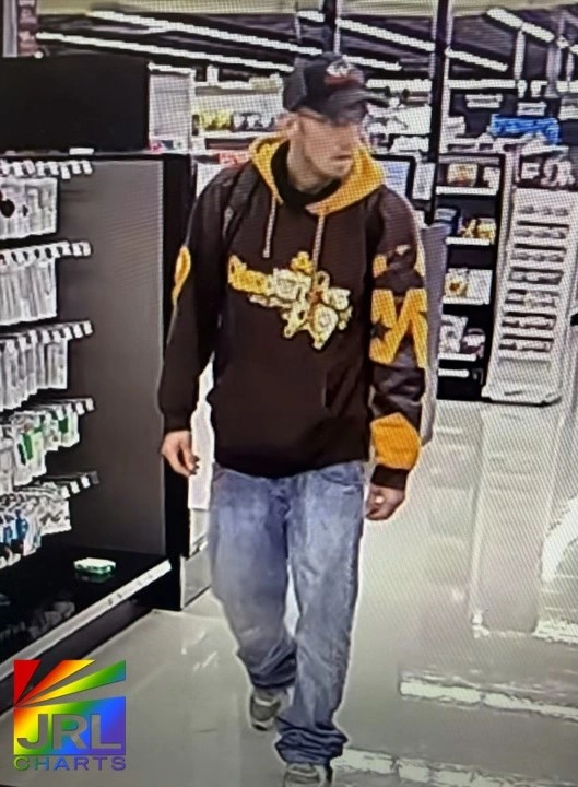 Surveillance image of the alleged suspect inside the Meijer sexual wellness section in Alliance, Ohio — featured in JRL CHARTS’ Retail Crime Alert coverage.